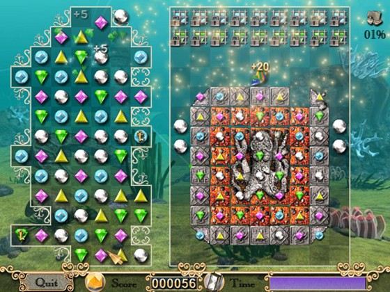На каждом уровне вы увидите множество драгоценных самоцветов всех цветов и оттенков. Вам необходимо двигать их таким образом, чтобы в результате каждого хода получалась горизонтальная или вертикальная цепочка как минимум из 3 одинаковых элементов. Многие фишки вросли в руины строений и остовы затонувших кораблей: двигать их нельзя, поэтому вам придется как следует постараться, чтобы добыть их.