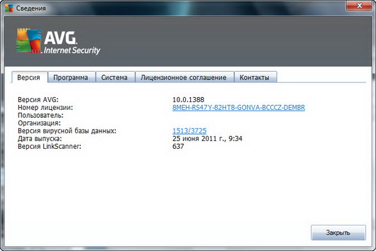 Скачать программу AVG Internet Security 2011 10.0.1388a3717 x64 (195,57 МБ):