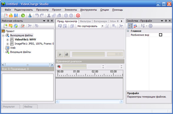 Videocharge Studio - приложение предназначенное для создания видео, оптимизированного для просмотра в Интернете. С помощью этой программы Вы сможете создавать видео-галереи (YouTube видео), графические галереи, закачивать видео на FTP, защищать видеофайлы с помощью "водяных знаков", редактировать видео.