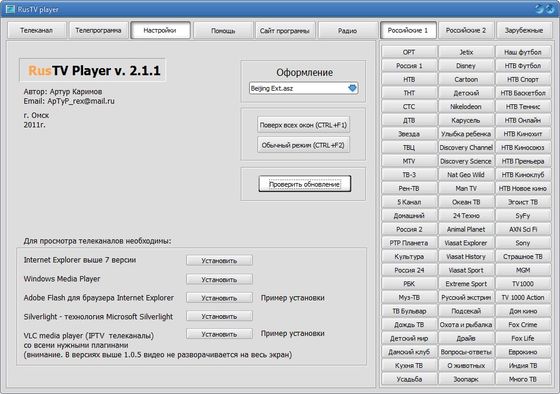 Скачать программу RusTV Player 2.1.1 (5,8 МБ):