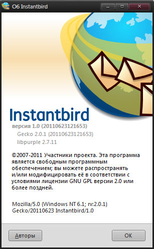 Скачать программу Instantbird 1.0 Final (10,16 МБ):