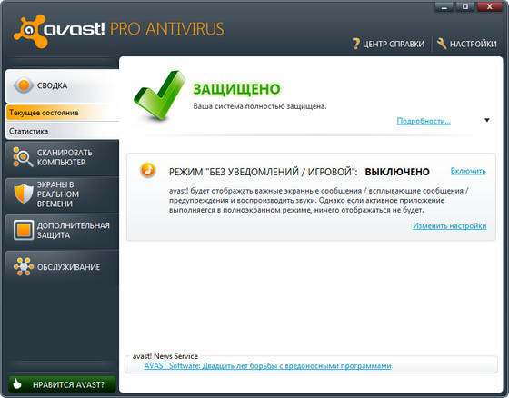 Avast! — антивирусное программное обеспечение, которое может найти вирусы на жестком диске ПК, в его памяти, в загрузочных секторах и т.д. Поддерживается поиск вирусов в письмах, имеется блокиратор скриптов. Вирусная база постоянно обновляется и может быть скачана через Интернет. Avast! обладает простым и понятным интерфейсом с поддержкой скинов. Выпускается в двух версиях – Home Edition (бесплатная для частного пользования) и Professional Edition (платная для организаций).