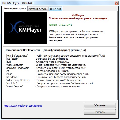 KMPlayer - это универсальный проигрыватель, который способен проиграть практически любые форматы медиафайлов, например такие как формат VCD, DVD, AVI, MKV, Ogg Theora, OGM, 3GP, MPEG-1/2/4, WMV, RealMedia, QuickTime и другие. Также программа понимает титры на DVD дисках и способна записывать звук, видео или картинки из любой части проигрываемого фрагмента. Плеер может работать с внутренними и внешними фильтрами и плагинами, что позволит управлять аудио-видео параметрами проигрываемых файлов. KMPlayer включает в себя почти все основные кодеки для воспроизведения информации.