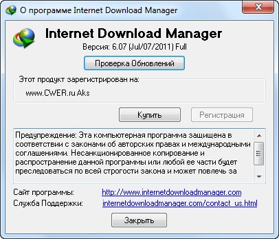 Скачать программу Internet Download Manager 6.07 Final (4,73 МБ):