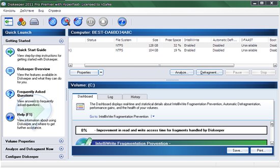 Diskeeper 2011 – быстрый дефрагментатор для Windows, который работает в шесть раз быстрее встроенных средств дефрагментации. Программа требует минимум системных ресурсов для поддержания максимальной производительности. Дефрагментация выполняется в фоновом режиме, не оказывая заметного влияния на работу пользователя. Интеллектуальное планирование динамически корректирует расписание процесса дефрагментации на основании состояния диска. От пользователя или администратора сети не потребуется учитывать загрузку сети – Diskeeper автоматически подстроится под неё и обеспечит ей максимальную производительность. В отличие от дефрагментаторов с ручным управлением, данная программа выполняется в соответствии с расписанием автоматической дефрагментации. Включает в себя средства развертывания и управления через сеть, а также функции одновременной дефрагментации нескольких разделов с разными файловыми системами. Чтобы ваш компьютер работал так-же быстро, как когда он был новый - достаточно установить Diskeeper.