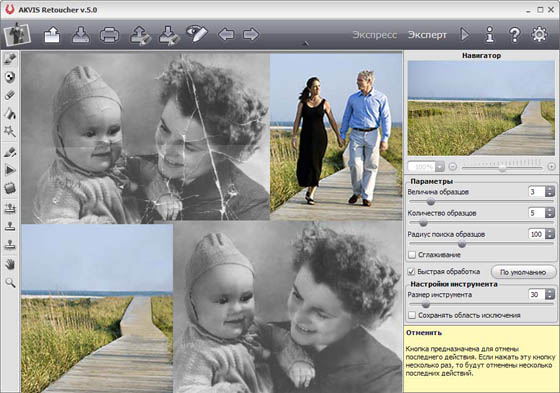 AKVIS Retoucher — идеальный инструмент ретуши, который облегчит обработку, сэкономит время и позволит получить удовольствие как от процесса реставрации, так и от результата!
