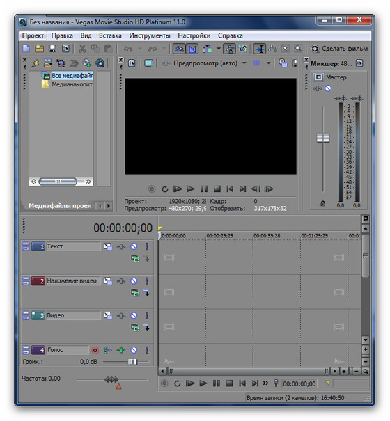 Vegas Movie Studio HD Platinum – видеоредактор, включающий в себя все необходимое для создания фильмов HD. Мощные функции композитинга, цветовой коррекции и инструменты для создания звукового оформления помогут вам получить профессиональный результат в своей домашней студии. Интерфейс Vegas Movie Studio позволяет пользователю иметь все необходимое под рукой без необходимости блуждания по меню для вызова того или иного модуля или операции. Количество отмен/повторов действий неограниченно. Функция записи CD, DVD и Blu-ray дисков полностью интегрирована в видеоредактор, таким образом, Вы можете легко делать диски профессионального уровня.