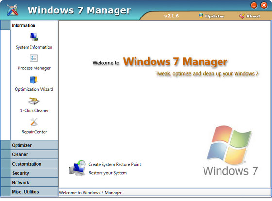 - Information. Get detailed system and all hardware information on your system; show all detailed information of running processes and threads on your machine; Windows 7 Manager offers 1-clicking cleans your system automatically.
