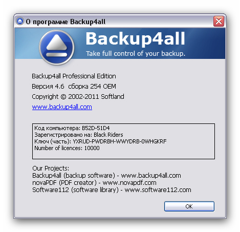Скачать программу Backup4all Professional 4.6 Build 254 (20,16 МБ):