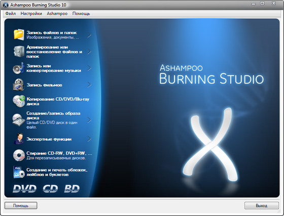 С самого первого выпуска Ashampoo Burning Studio изменила представление о привычном программном обеспечении для записи. Вместо того, чтобы тратить время на подробное изучение сотни сложных свойств, вам надо всего лишь выбрать задание, например - «Записать файлы», «Дублировать файлы» или «Записать фильм», а затем программа поможет вам сделать все необходимое. Вы всего лишь выбираете нужный формат, файлы, и записываете диск. Это легко, но легкость не означает, что у вас меньше функциональных возможностей: усовершенствованные функции записи доступны и опытным пользователям, которые хотели бы выбрать специфические системные файлы или воспользоваться специальной областью начальной загрузки.