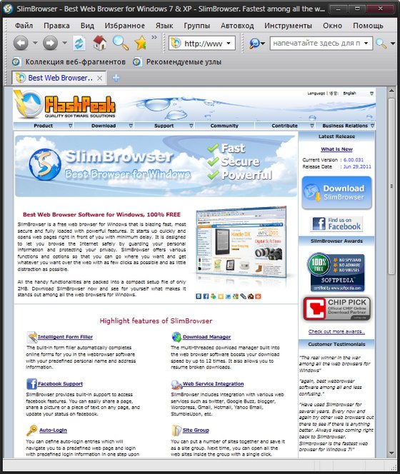 Скачать программу SlimBrowser 6.00 Build 045 Final (3,04 МБ):