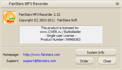 Скачать программу FairStars MP3 Recorder 2.32 (2,75 МБ):