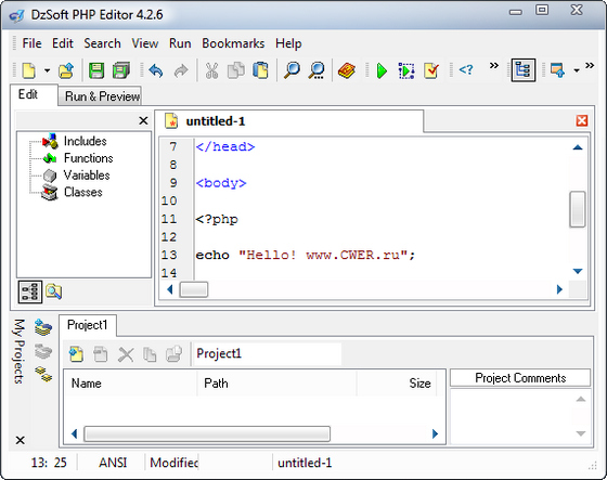 Скачать программу DzSoft PHP Editor 4.2.6.7 (5,24 МБ):