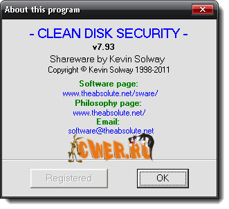 Clean Disk Security - программа для безопасного удаления файлов. Она дает гарантию, что после удаления с жесткого диска исчезает не только запись о файле, но и сам файл, и восстановить его невозможно. Clean Disk Security также может очищать файл подкачки, временные файлы, которые не используются (например, занесенные в Корзину, кеш браузера и пр.). В программу также встроен просмотрщик жесткого диска, который поможет найти все скрытые файлы и папки на нем.