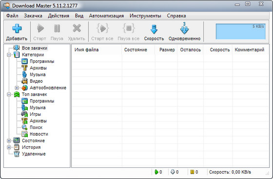 Download Master эффективно решает 3 главных проблемы возникающих при закачке файлов из Интернет: скорость закачки, продолжение прерванных закачек и управление закачанными файлами. Основными чертами, выделяющими Download Master среди других программ, являются высочайшая эффективность работы и удобный пользовательский интерфейс.