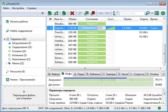 uTorrent 3.0 — это очень крупное обновление с целым набором новых, весьма полезных, функций: