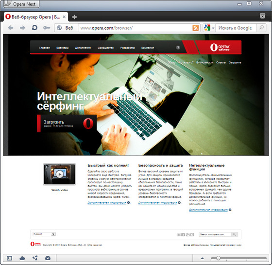 Скачать программу Opera Next 12.00 Build 1042 Pre-alpha (9,79 МБ):