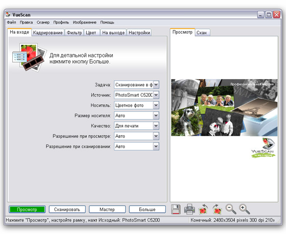 VueScan - программа предназначена для замены стандартного интерфейса сканера на собственный, функционально более богатый и предоставляющий массу дополнительных возможностей в зависимости от конкретной модели сканера.
