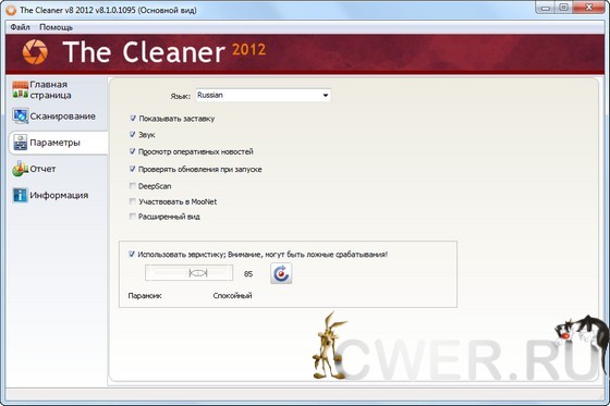 The Cleaner - программа, необходимая для поиска и удаления на вашем компьютере вирусов, троянов, программ-шпионов и различных вредоносных рекламных программ. Включив опцию мониторинга файлов и процессов программа будет всегда следить за всеми программами и процессами на вашем компьютере и при опасных изменениях будет вас информировать, либо сразу удалить их, если файлы будут в опасности. Также имеется зона карантина, проверка компьютера по расписанию, обновление сигнатур через интернет.