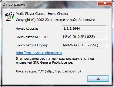 Скачать программу Media Player Classic HomeCinema 1.5.3.3644 х86 (5,3 МБ):