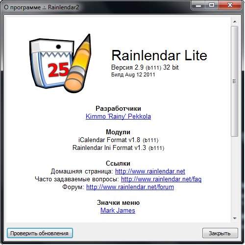 Скачать программу Rainlendar Lite 2.9 Build 111 х86 (8,7 МБ):