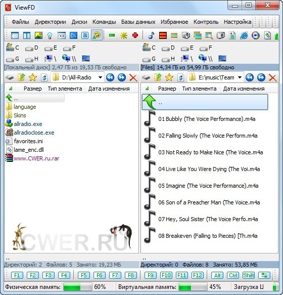 ViewFD - очень легкий, компактный файловый менеджер, по возможностям вполне сравнимый с Total Commander, но при этом бесплатный. ViewFD имеет встроенные средства для просмотра файлов, понимает распространенные текстовые форматы, среди которых есть RTF. Присутствует также просмотрщик изображений, который обладает возможностью их редактирования.