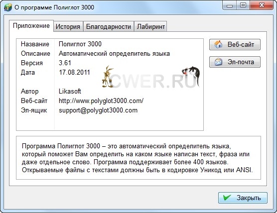Полиглот 3000 (или сокращённо П3000) – это автоматический определитель языка, который предназначен для быстрого и корректного определения того на каком языке написан введённый Вами текст. Программа работает в операционных системах Windows 95/98/NT/ME/2000/XP/Vista/7.