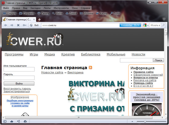 Скачать программу Portable Opera 12.00.1047 Snapshot + Plugins + Antibanner (27,2 МБ):