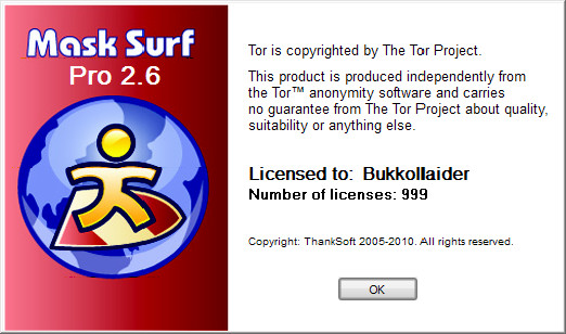 Mask Surf Pro - это простая в использовании программа для анонимного серфинга, основанная на технологии The Onion Router (Tor). Mask Surf Pro использует в своей работе сеть распределенных серверов Tor, призванных обеспечить анонимный обмен информацией в Интернет, тем самым предоставляя бескомпромиссный уровень защиты вашей информации. Это идеальное решение для опытных пользователей, которые желают контролировать все аспекты своей анонимности в сети Интернет.