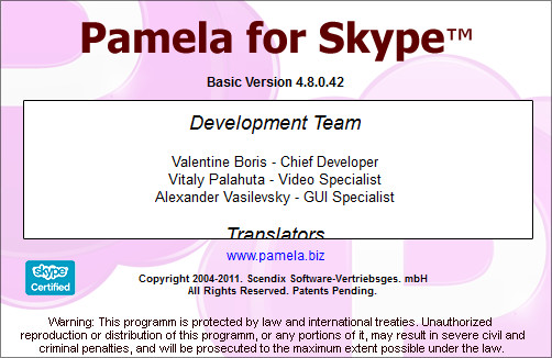 Скачать программу Pamela for Skype Basic 4.8.0.42 (8,39 МБ):