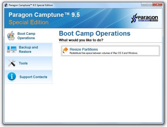 Paragon CampTune - полный клон недавно обновленного инструмента Paragon CampTune 9.5 for Mac OS X, но который был создан специально для Windows. Все операции проводятся из Windows или режима синего экрана Windows. Данное приложение позволит вам распределить неиспользуемое место на диске между разделами Mac OS X и Windows в конфигурациях Boot Camp. Перераспределяйте место на диске между Windows и Mac OS!