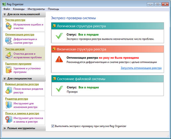 - Изменена логика запуска экспресс-проверки при старте Reg Organizer.