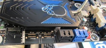 Для подключения накопителей на плате имеется лишь по два порта SATA 6 Гбит/с и 3 Гбит/с, хотя на печатной плате распаяно место под дополнительные порты SATA и SAS.