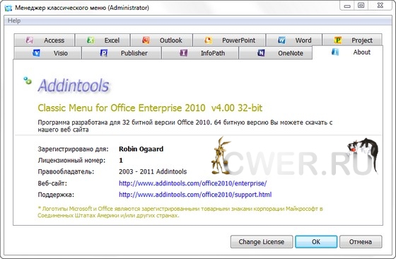 Скачать программу Classic Menu for Office Enterprise 2010 v4.00 (8,43 МБ):