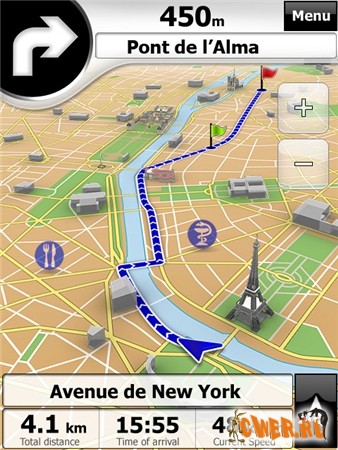 Новые решения в навигации и голосовых подсказках очень удачно совместились с новым дизайном. Теперь указывается 2 ближайших поворота с оставшимся расстоянием до каждого из них. В программе появились новые голоса и новые пункты меню.Новая версия ПО использует, картографию