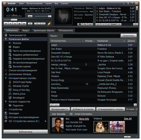 - Библиотека мультимедиа. Храните и проводите поиск ваших мультимедиа-файлов в одном месте. Возможность записи файлов из CD на компьютер и из компьютера на CD. Редактирование тэгов музыкальных файлов (исполнитель, композиция, альбом и др.). Доступ к интернет-радио и TV. Дополнительная информация (дискография, биография, обложки альбомов) о ваших любимых исполнителях и группах в плеере Winamp.
