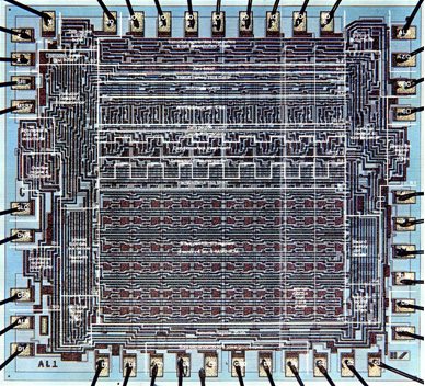 Правда, пока этот процесс подходил лишь для изготовления отдельных кристаллов. Но уже тогда стало ясно, что микросхем понадобится не меньше, чем дискретных элементов, а значит их производство должно быть более массовым. К счастью, в 1958 г. Джэй Лэст и Роберт Нойс построили один из первых фотоповторителей, позволявших на одну пластину проецировать множество копий маски. А в 1961 г. выпущены первые промышленные фотоповторители с уменьшением изображения — теперь маску можно сделать в 5–10 раз больше, что упрощало процесс её подготовки. Маски изготавливались переносом выполненных на прозрачной плёнке чертежей на лист рубилита, на котором координатограф полуручным способом гравировал оттиск. Сами чипы изготавливались из пластин диаметром всего 13⅓ мм, введённых в 1960 г. Право называться первой коммерческой оспаривают микросхемы Fairchild и Texas Instruments. Кстати, Уильям Шокли также достиг массового производства своего диода, но так и не добился успеха — потому что появились микросхемы, где 3–6 транзисторов могли заменить такой диод. (Вставить сюда фразу про злобного буратино — прим.авт.)
