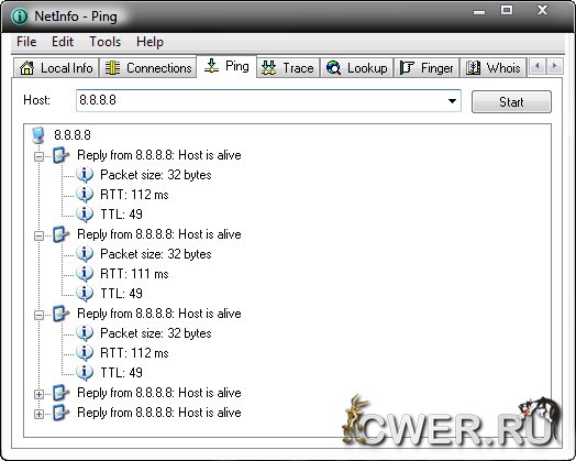 Netinfo - комплект программ, предназначенный для получения данных о состоянии локальной сети и отдельном персональном компьютере в сети. Netinfo выдаст подробный отчет, в котором отображены процессы, создающие сетевые подключения, и серверы, к которым они производят подключение. Также утилита выполнит пинг или трассировку до любого хоста и выдаст информацию о владельце того или иного сайта при помощи whois.