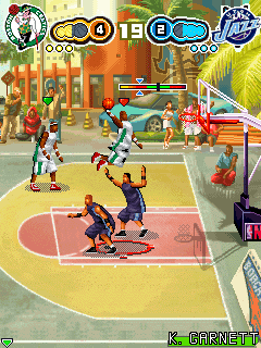 Игра для мобильных телефонов. Соревнуйтесь с игроками NBA в зрелищных стритбольных поединках «2 на 2». Размеры экрана: 128х128, 128х160, 176х208, 240х320.