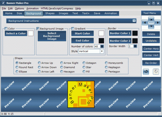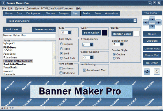 - Better, smoother text - Text created with Banner Maker Pro now has anti-aliasing technology. Text looks clean and crisp.