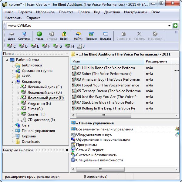 Поддерживается работа с сетевыми дисками, причём, в подключённых сетевых дисках при необходимости происходит автоматическое обновление файлов. Программа может работать как с отдельно взятыми файлами, так и с файлами в пакетном режиме. Для удобства и быстрого открытия какого-либо файла или каталога, можно поставить закладку. Встроенные средства этого менеджера позволяют просматривать графику, предварительно прослушивать аудио и просматривать видео файлы, а также файлы форматов HTML, Text, RTF и Hex. xplorer2 можно рекомендовать для работы и компьютерным новичкам, и пользователям, имеющим большой опыт.