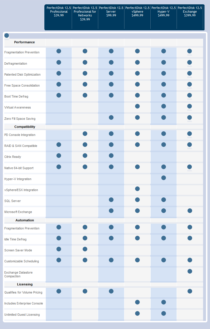 • совместная работа с версией PerfectDisk для Microsoft Exchange и автоматическая дефрагментация в различных режимах