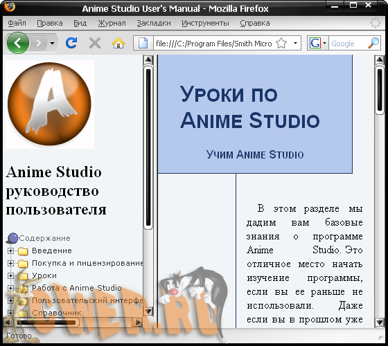 Скачать программу Anime Studio 5.6 + русификатор + руководство пользователя (117 МБ):