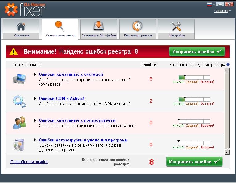 DLL-files Fixer - программа для чистки и оптимизации реестра от ненужного "мусора", например после удаления приложений или игр. Весь этот мусор копится и компьютер начинает понемногу тормозить, а потом, как следствия разнообразные "глюки" и очередная переустановка операционной системы.