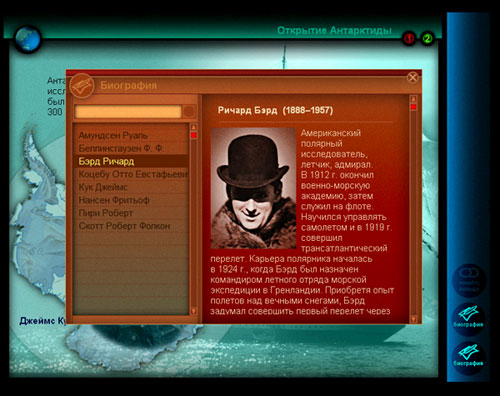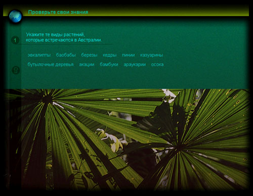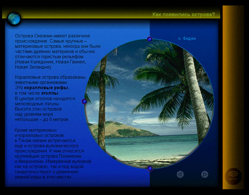 Теоретический материал сгруппирован в уроки, представлен в наглядной форме и дополнен компонентами, необходимыми для любого учебника (словарем, таблицами, биографиями выдающихся исследователей, ученых, политиков). Учебный материал включает подробные географические карты с возможностью поиска объектов, полноэкранные озвученные видеосюжеты и коллекцию высококачественных фотографий. Для закрепления пройденного материала в конце каждого урока представлены разнообразные упражнения с возможностью проверки ответов и самостоятельной работы над улучшением результатов. Подробный отчет о результатах выполнения упражнений помогает выявить пробелы в знаниях, темы, требующие повторения и дополнительного изучения.