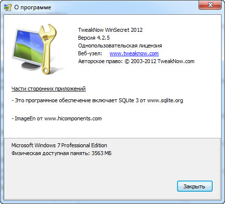 Скачать программу TweakNow WinSecret 2012 4.2.5 Rus (6,7 МБ):