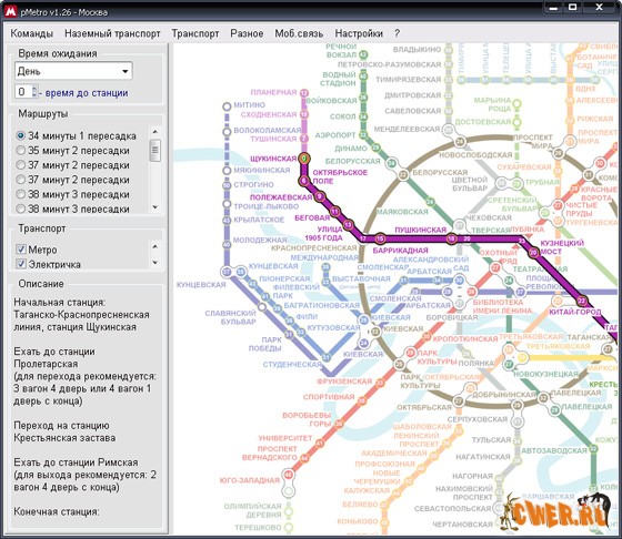 pMetro - совершенно бесплатный справочник метро Москвы и других городов! Отображает схему метро города (а для некоторых городов и схему электропоездов), позволяет найти кратчайшие пути между станциями, а также описывает, что находится рядом со станциями.