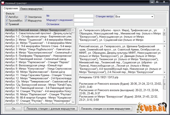 - Наземный транспорт: поиск пути между заданными пунктами, в том числе с пересадками, справочник по маршрутам.