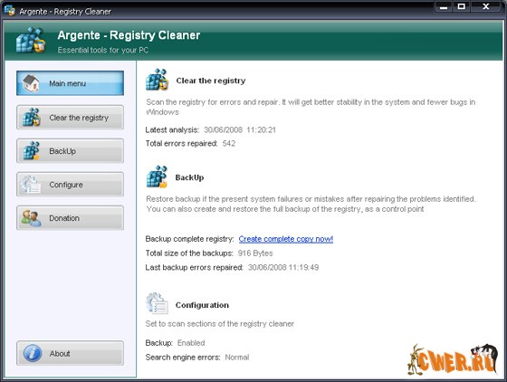 Скачать Portable Argente Registry Cleaner 1.4.2.1 (4,23 МБ):