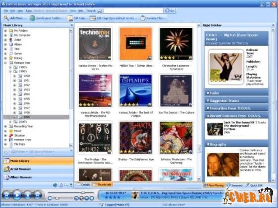 Helium Music Manager - это программа для редактирования музыкальных тегов, переименования, каталогизации, броузинга, создания плейлистов и отчётов. Она имеет функции для редактирования, каталогизации и проигрывания наиболее популярных музыкальных форматов (MP3, Ogg, WMA, iTunes M4A, FLAC, APE и MPC), в том числе и стандартных АудиоCD. Каталогизация Вашей музыкальной коллекции происходит с помощью нескольких кликов, в независимости от вида носителей, на которых она расположена.
